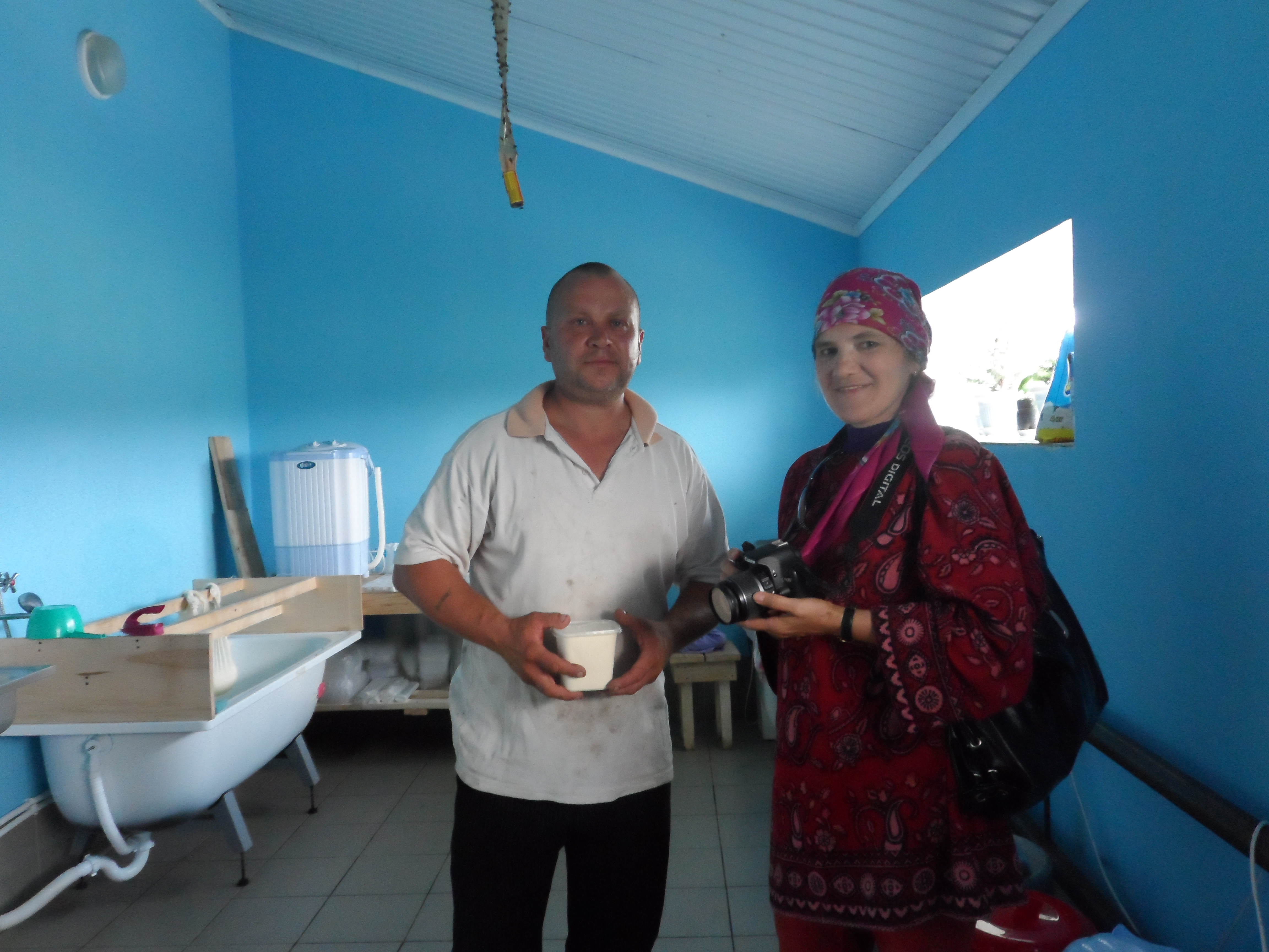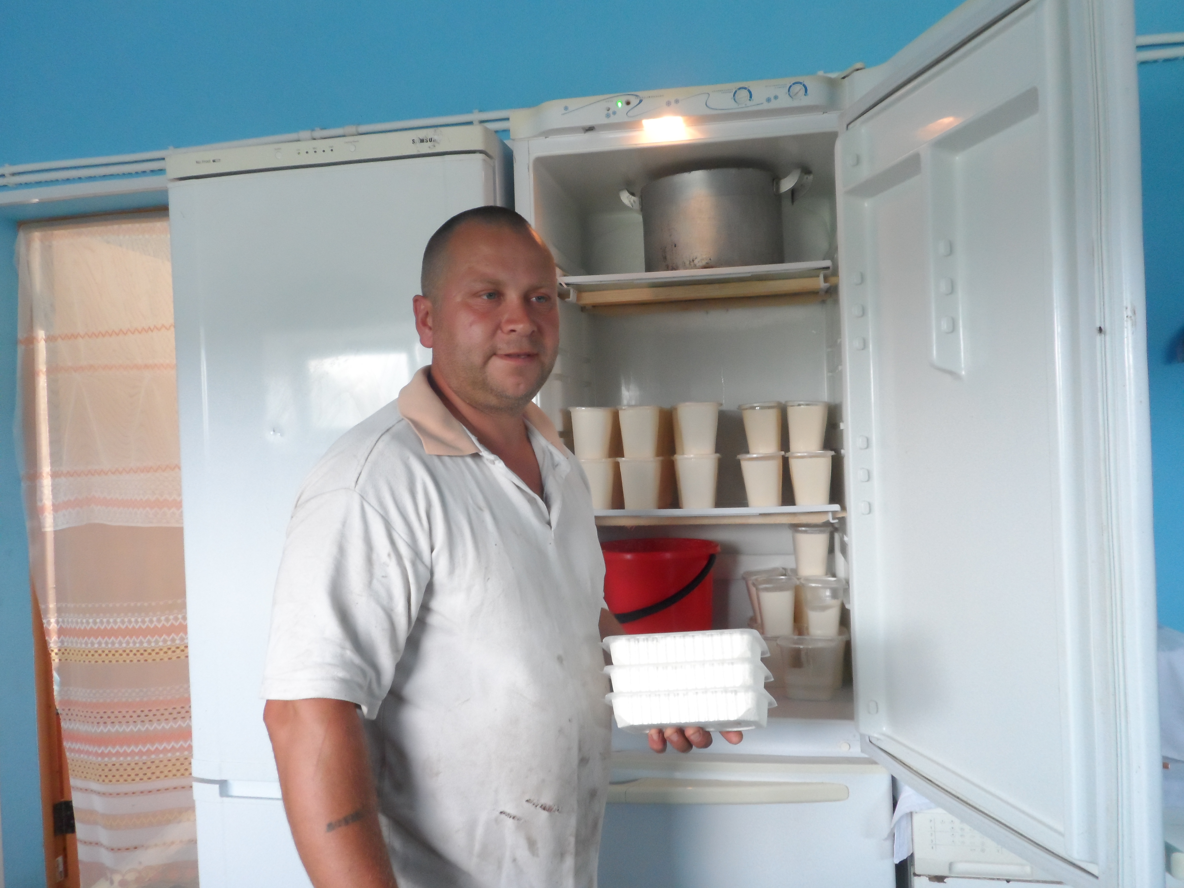 Сделали дегустацию молочной продукции : творог, масло сливочное, сыр, сметана. Все очень вкусно!!! В хозяйстве Гурнович В.С. сметану готовят по специальной технологии, с применением тибетского гриба. Сметана приобретает лечебные и косметические свойства. По просьбе жителей производит продажу излишков молочной продукции.