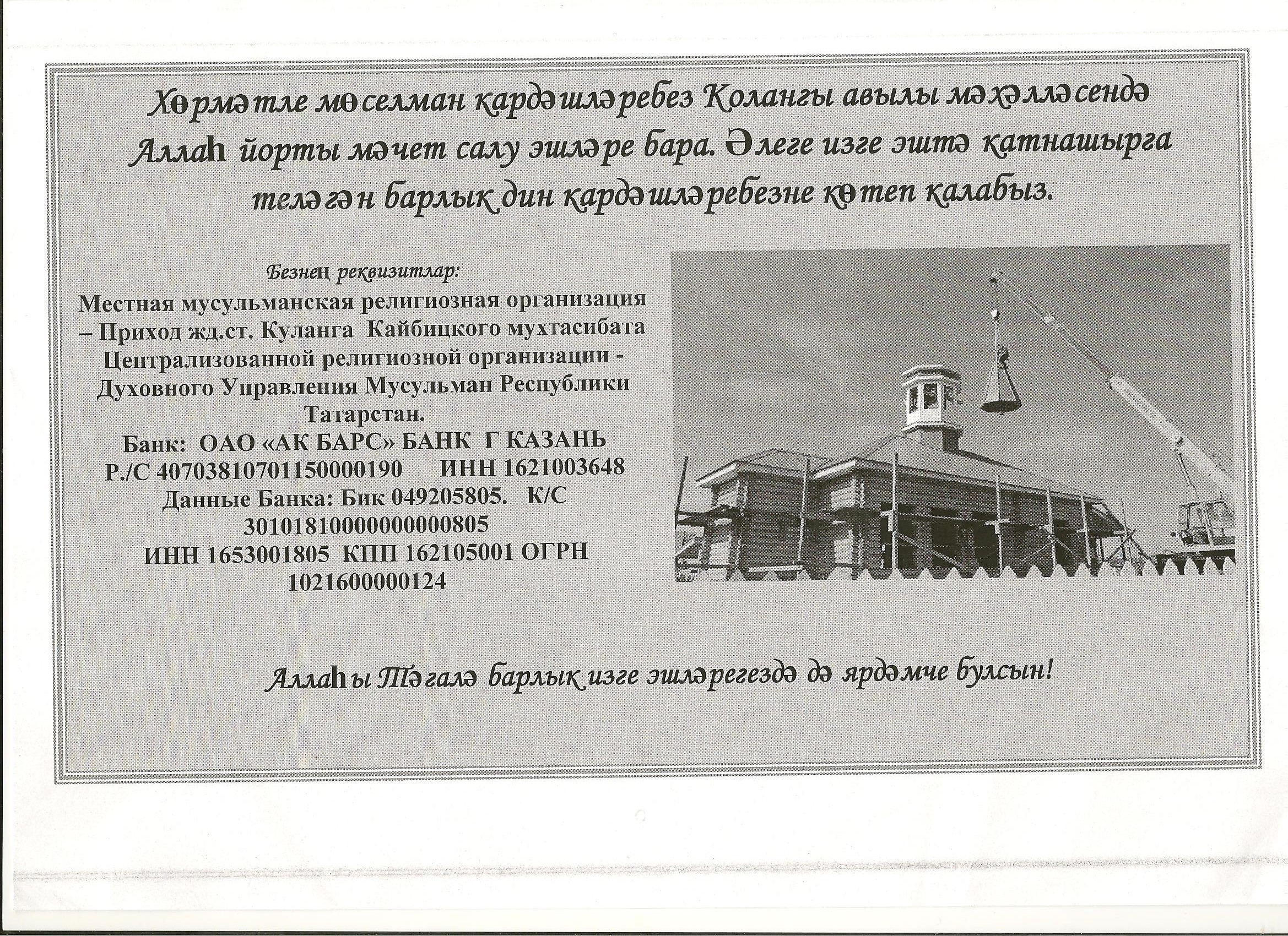 Обращение к мусульманам о спонсорской помощи.